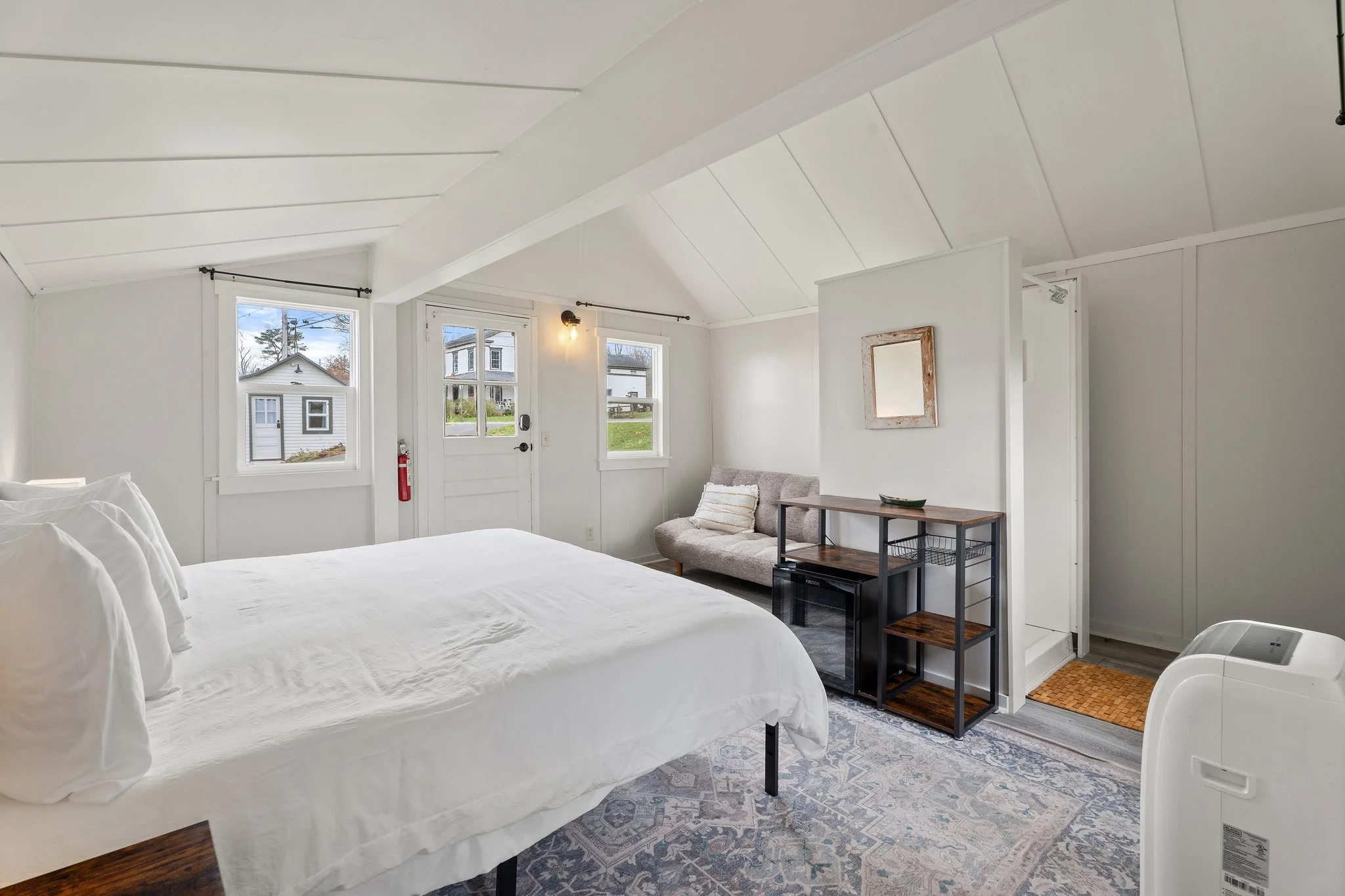 All four cottages are outfitted with king beds or twins, along with their own private bathrooms with showers. Sweet, satisfying, and right on the shore.
